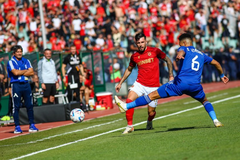 Същевременно две минути преди края на постоянното време от първата част " Левски " откри резултата в срещата с първия прецизен удар в мача.