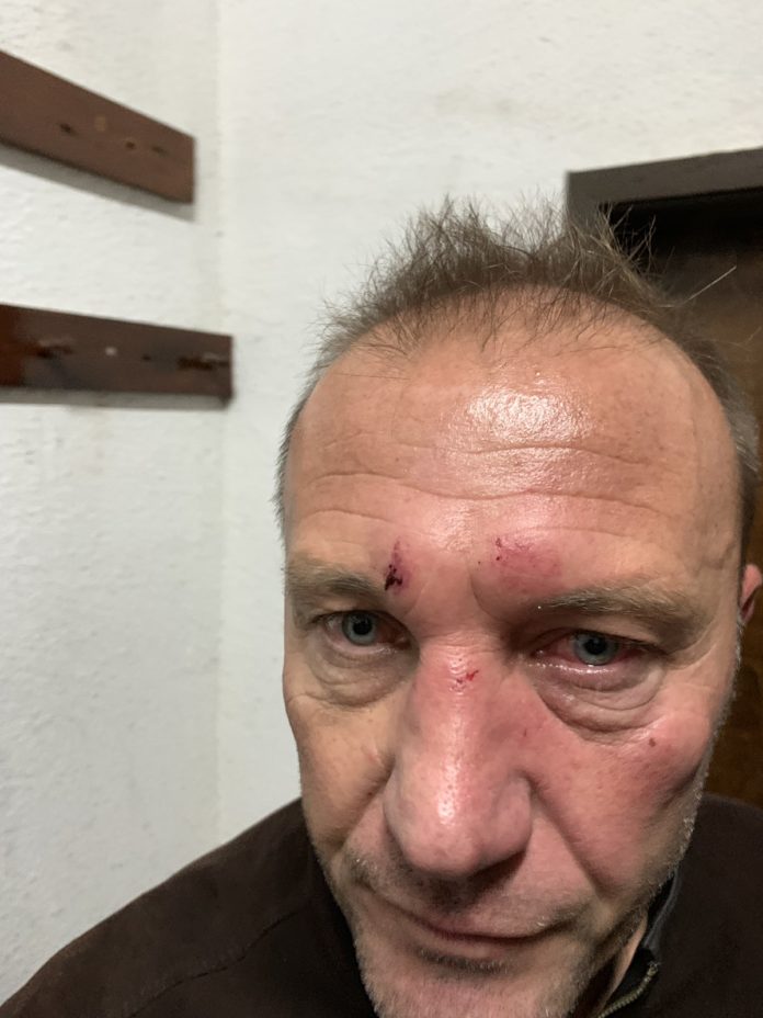 " Такова нещо не е имало едно време в Олимпик Галата. Бойко Величков предизвика всичко. Пребиха брат ми с боксове, сега е в тежко състояние. Чакаме полиция да ни изведе от стадиона “, съобщи Иван Папазов, който изпрати и фотография на пребития си брат.