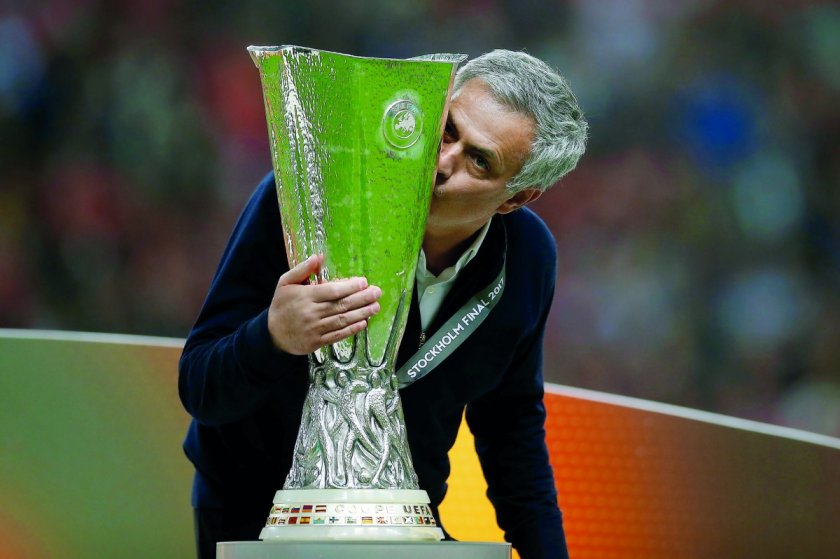 Жозе Моуриньо целува трофея Лига Европа в Стокхолм