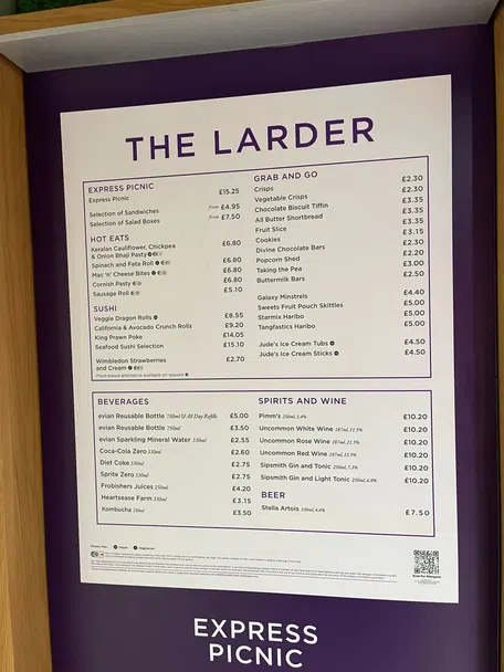 Феновете, които търсят нещо по-засищащо, могат да си вземат наденичка в тесто за £5.10, корнуолски къс за £6.80 или даже селекция от суши за £15.10.