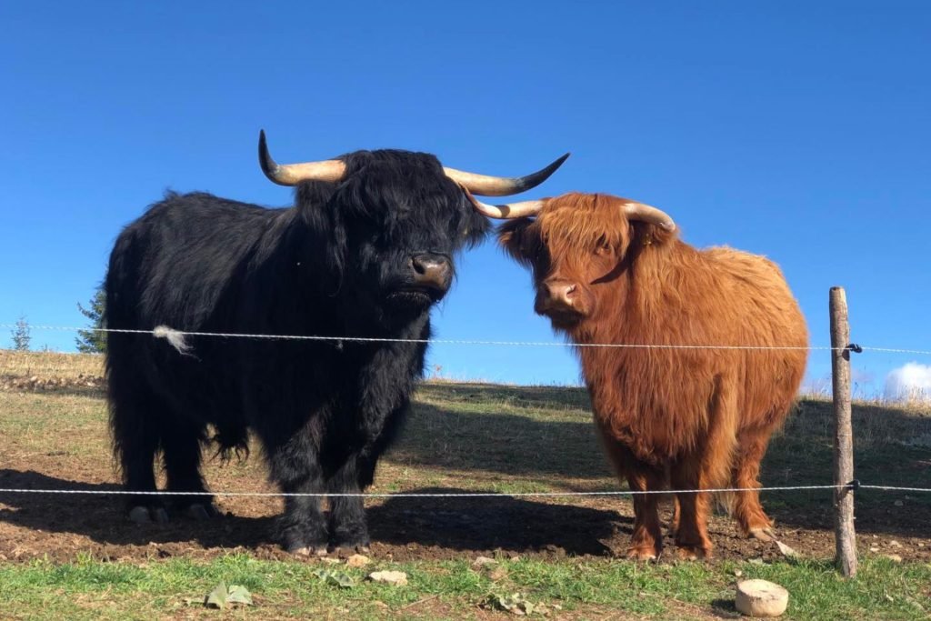 Шотландските говеда са най-симпатичните във фермата Вторите са швейцарските черноноси овце, които са извънредно симпатична и общителна порода, която през днешния ден е застрашена от изгубване. " Навремето са се отглеждали всеобщо поради вълната, само че през днешния ден хората не избират тази материя и ползата към тях понижава ", добавя той.