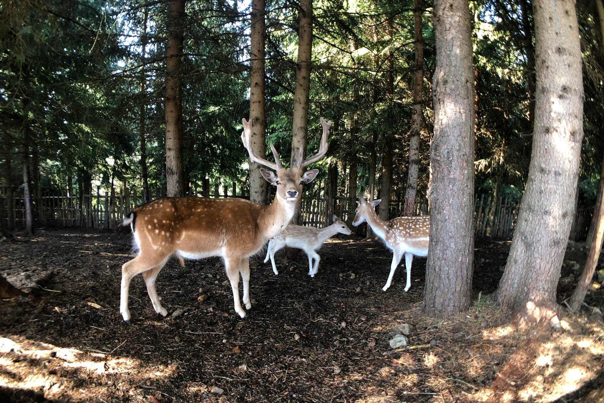 Третият тип животни са еленчета лопатари, които са изцяло опитомени и през летния сезон гостите могат да влизат при тях, да ги галят, хранят и да си вършат селфита. Освен това във фермата има магаренце и куче от породата американска акита.
