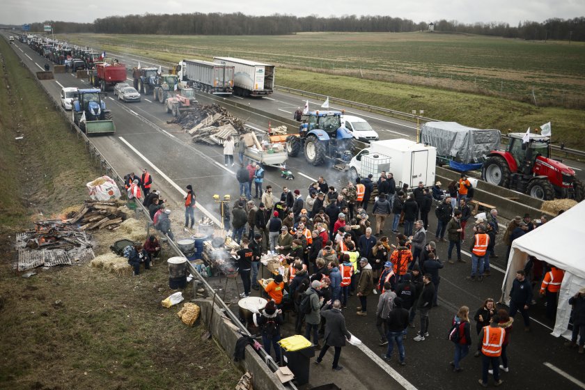 Гневни фермери пробваха да нарушат работата на огромната хранителна борса Ранжис в покрайнините на френската столица. Обектът се охранява от жандармерия по искане на държавното управление и стачкуващите отстъпиха. Протестиращите са разположили 150 трактора на автомагистрала единствено на 40 километра от Париж. Напредвайки към столицата, фермерите се пробват да засилят натиска върху държавното управление за по-малко регулации, за ограничения против евтиния импорт и гарантиране на по-високи приходи за производителите.