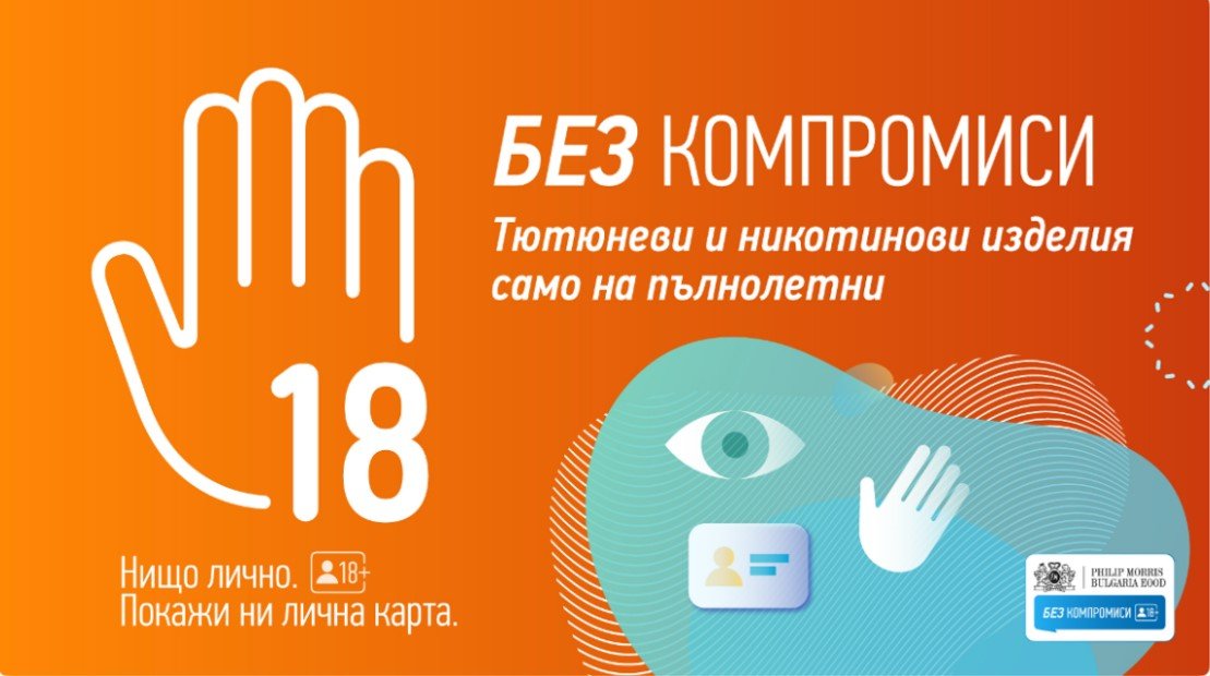 Филип Морис България разгласи старта на новата си акция " БЕЗ КОМПРОМИСИ ", която по безапелационен метод приканва да се съблюдава законовата възбрана в страната за недопускане на подрастващите до тютюневи и никотинови произведения. Инициативата има за цел да ускори уговорката на компанията към виновното и стабилно бизнес държание, като в същото време ангажира разнообразни публични групи, наблягайки груповата отговорност към наболелия проблем.