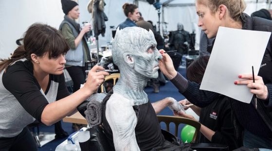 От четвърти сезон насам екипът, грижещ се за театралните маски и протези, изразходва близо 11 000 кг силикон. Най-дългото слагане на театрален грим е било за актьорите в роля на Децата на гората – цели 7 часа на човек. Над 12 000 перуки са употребени през сезоните, а финалният тип на отличаващата се прическа на Денерис лишава повече от два месеца проби и тестване и седем прототипа.
