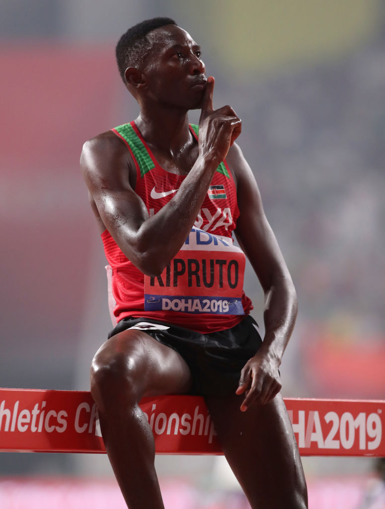 Финалът в бягането на 3000 метра стийпълчейз при мъжетe на Световното състезание по лека атлетика в Доха се трансформира в същински спринт. Една стотна реши първенеца в атрактивния край. 24-годишният кениец Консеслус Кипруто съумя да отбрани златния си орден от преди две години безусловно в последния метър и финишира първи за 8:01.35 минути - най-хубав резултат в света за сезона.
