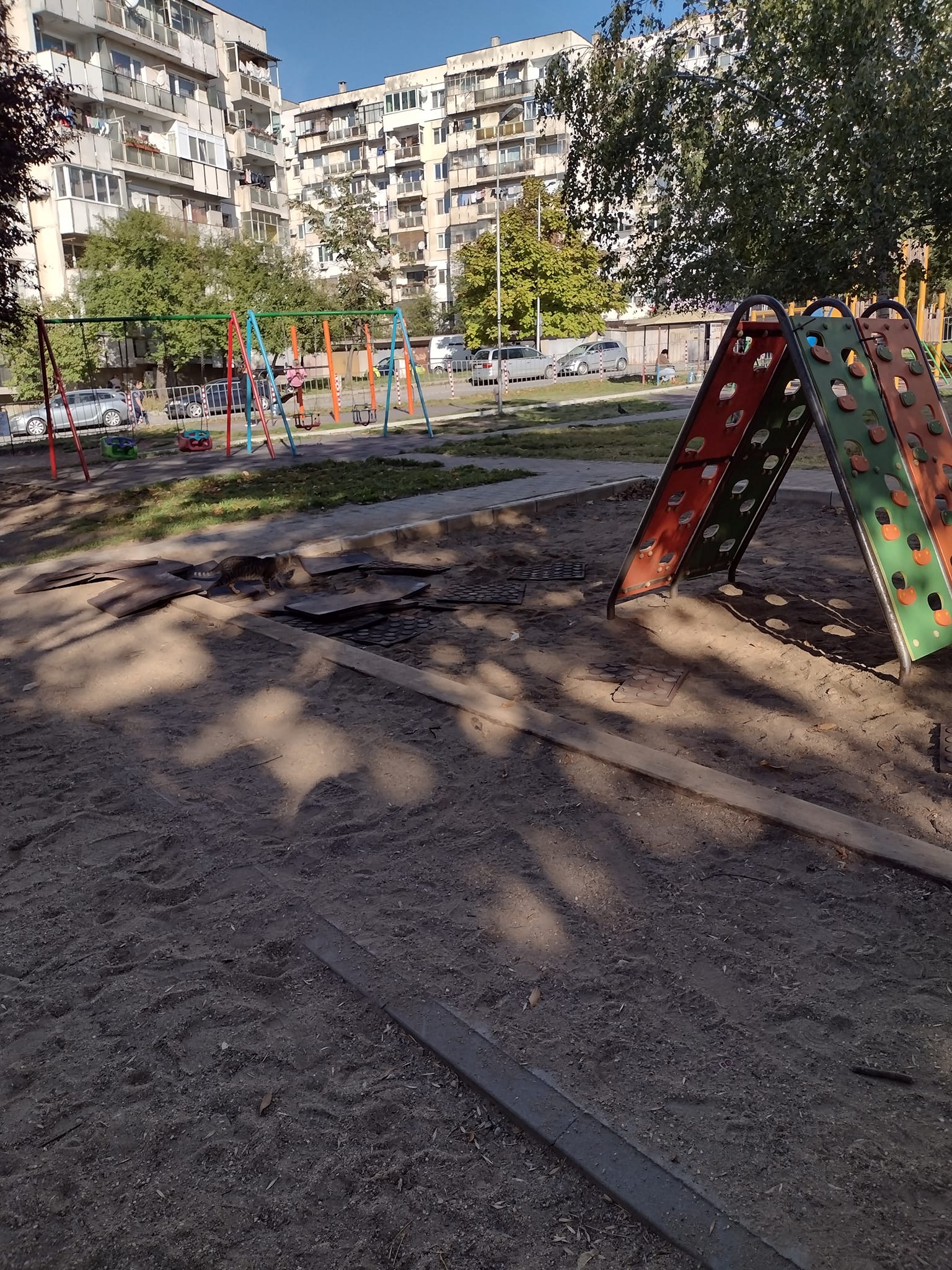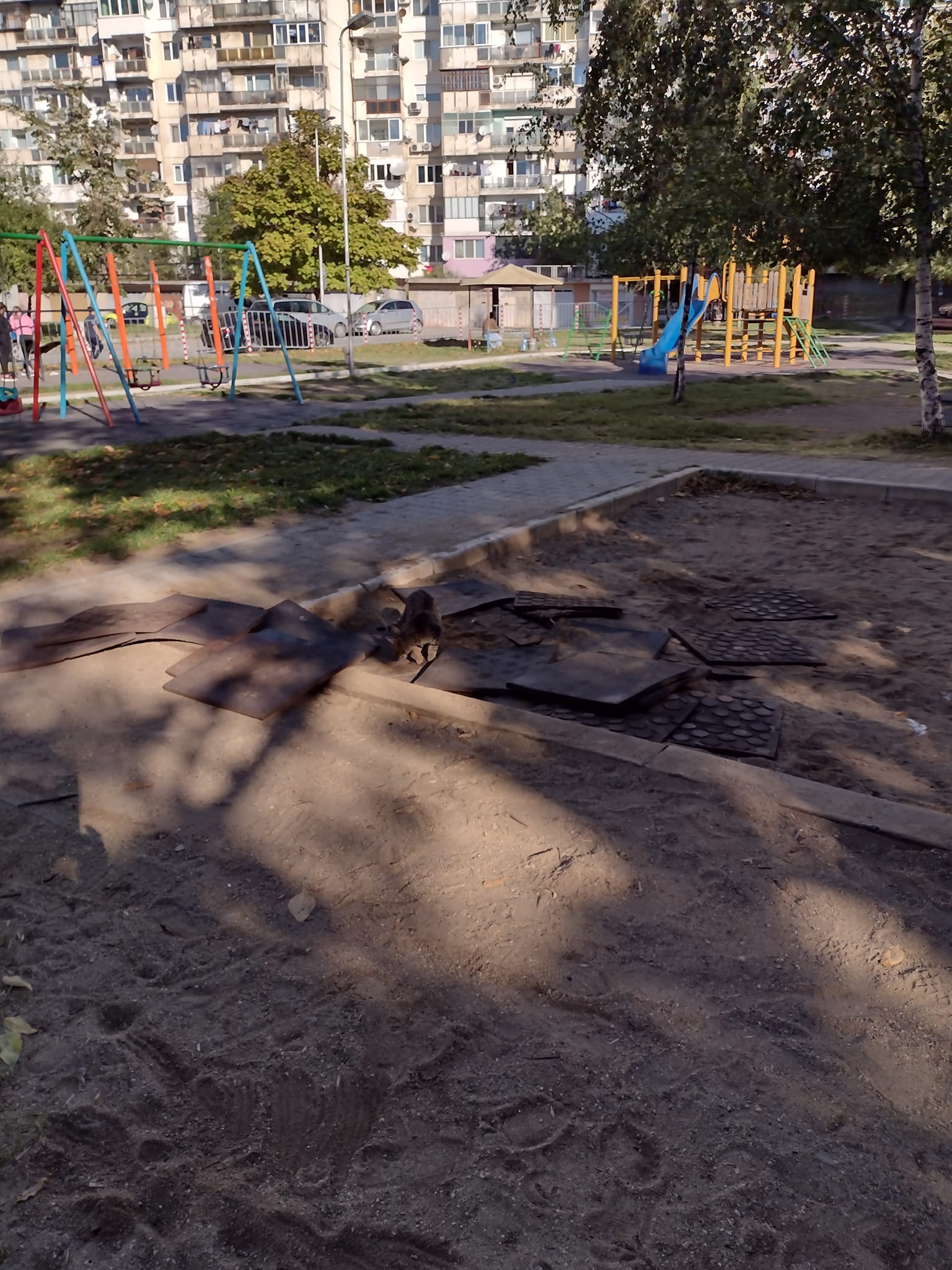 На места липсва специфичната настилка по детските уреди за игра.