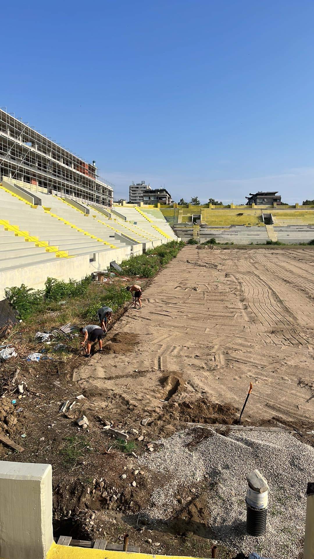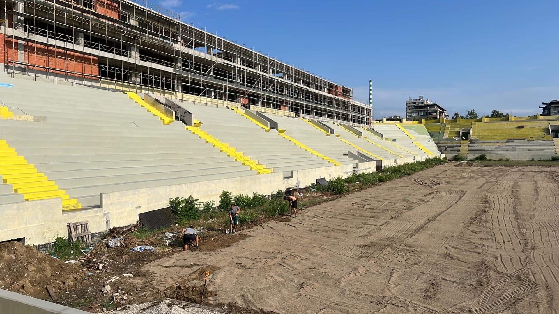 Фирмата, която прави терена на стадион " Христо Ботев " разгласява във Facebook фотоси от терена и почналата работа по него.
