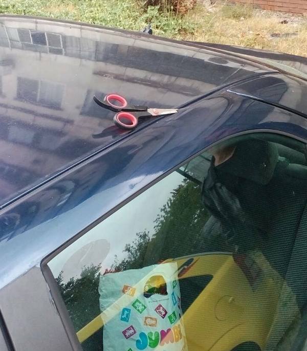 „ Живеем в к-с Зорница бл. 36А. В момента ни санират и паркингът съвсем постоянно е цялостен, доста е мъчно да се откри паркомясто. Заради това в събота вечерта паркирахме пред бл.31, който се намира против нашия блок. На идващия ден, към 13 часа, трябваше да излезем и отивайки до колата останахме шокирани… задното стъкло беше строшено, а във вратата беше забита ножица!