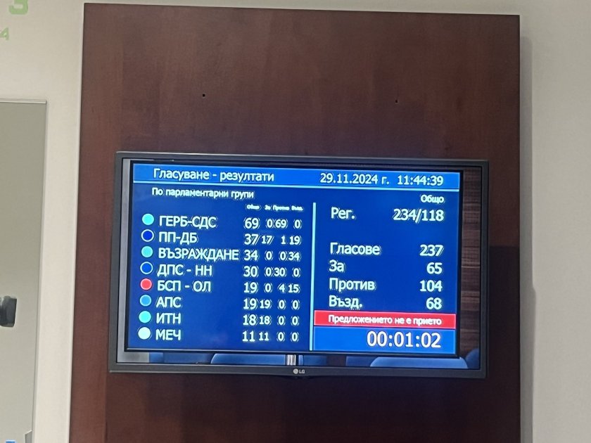 Assoc. Prof. Silvi Kirilov was supported by 65 MPs, with 104 voting against, and 68 abstaining.