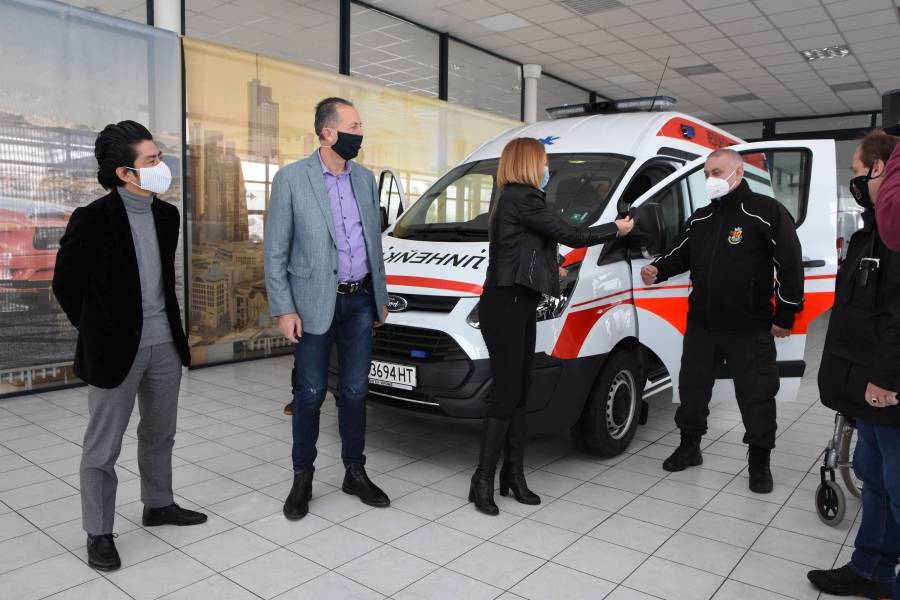 Ключовете на автомобила предадоха шефовете на Мото-Пфое, господин Атанас Фурнаджиев и господин Масухиро Ояма, които обявиха от името на Ford: „ Радваме се, че при актуалната тежката конюнктура още веднъж можем да сме потребни на обществото посредством Столична община. Линейката, която предоставяме, ще оказва помощ на място в обществените домове и по този начин отчасти ще облекчи натиска към болничните заведения и медиците в тях. Това приносът на Мото-Пфое в битката с COVID-19. Използваме опцията да призовем всички да се пазят. “
