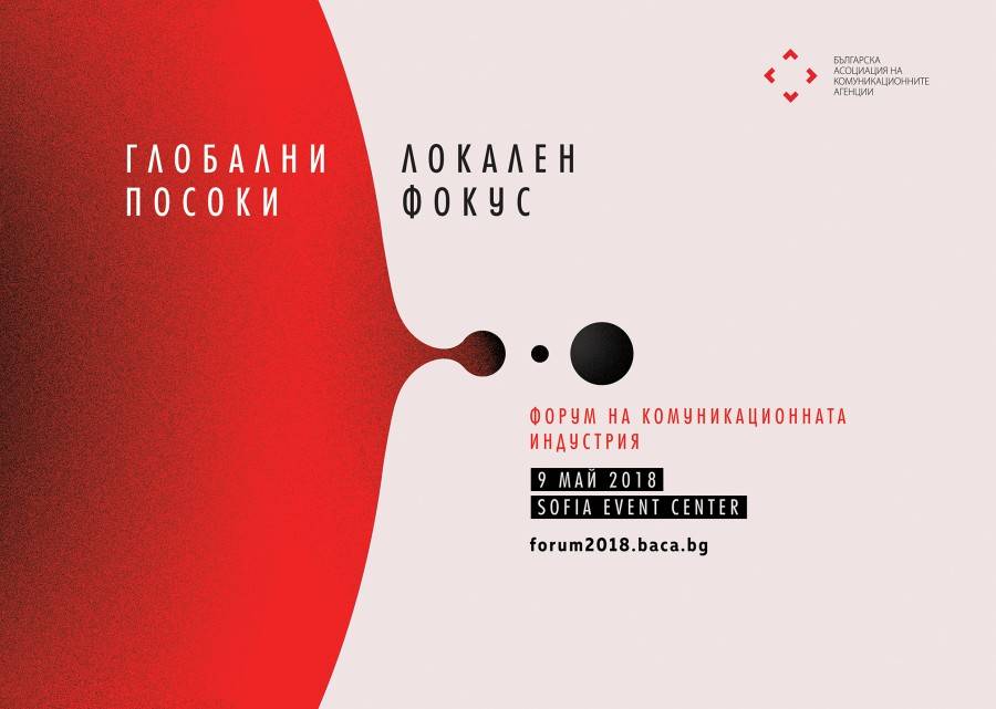 Форум на информационната промишленост “, който ще се организира на 9 май в Sofia Event Center, ще показа данни на Българската асоциация на информационните организации (БАКА) за чистите рекламни бюджети и медийната инфлация в България през 2017, и предстоящите стойности за 2018. Eднодневната конференция ще се организира под надпис „ Глобални направления – местен фокус” и ще направи преглед на рекламния пазар oт бизнес позиция. В три тематични панела представители на топ мениджмънта на голeмите медийни групи и рекламодатели, някои от водещите маркетингови откриватели и интернационално приети лектори ще споделят с аудиторията от маркетингови и информационни специалисти мненията и прогнозите си за трансформацията – в рекламния бизнес, потребителското държание и в цифровия свят.