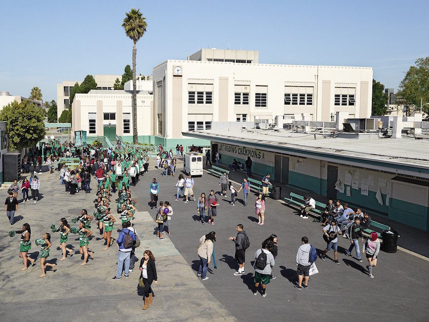 ИНГЪЛУУД, Съединени американски щати: Тази гимназия е държавно учебно заведение в Лос Анджелис. Молисън прави тази фотография тъкмо преди осъществяване на рали.