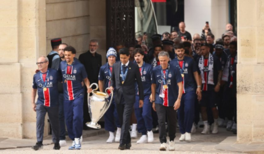 Футболистите на ПСЖ дойдоха към 18:30 часа в центъра на френската столица или час откакто кацнаха в града и към 40 минути одобряваха поздравления от близо 100 000 последователи. На големи екрани бяха предавани още веднъж головете на ПСЖ против Интер Милано във финала на Шампионската лига.