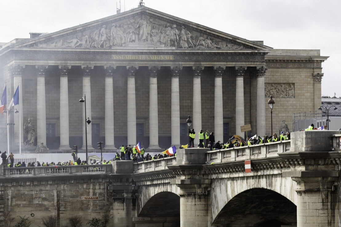 Assemblee Nationale during gilets jaunes Според някои статистики, Франция не е страната с най-вече митинги в света, само че минава междинното равнище на всяка друга европейска страна. От 1947 година се слага първата стачка на железничарите и в идващите 72 години ще върви без пропусната година. Според калкулации на министерството на труда сред 2005 и 2017 година са пропуснати към 118 работни дни и са наранени към 1000 частни бранша. Всеки един от засегнатите ще е причина за най-малко още един митинг в този интервал. Междувременно Франция се намира на второ място по митинги, първенци остават Кипър.