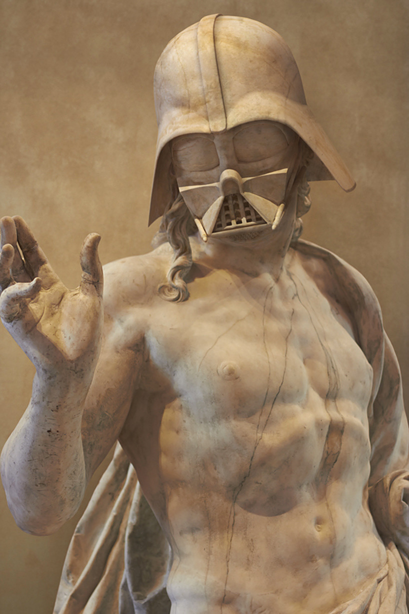 Френският актьор Travis Durden явно не среща никакви трудности в желанието си да съчетае привидно несъчетаеми неща. Култовите герои от Star Wars изобразени като антични гръцки скулптури – това е в действителност трагичен сюжет. Изкуството на древността подава ръка на поп-културата и звездните пространства, тъй като въпреки всичко, животът е къс, изкуството – постоянно. Йода като ангел, Дарт Вейдър като Бог. Вдъхващите благоговение статуи са в действителност майсторски направени 3D – модели.