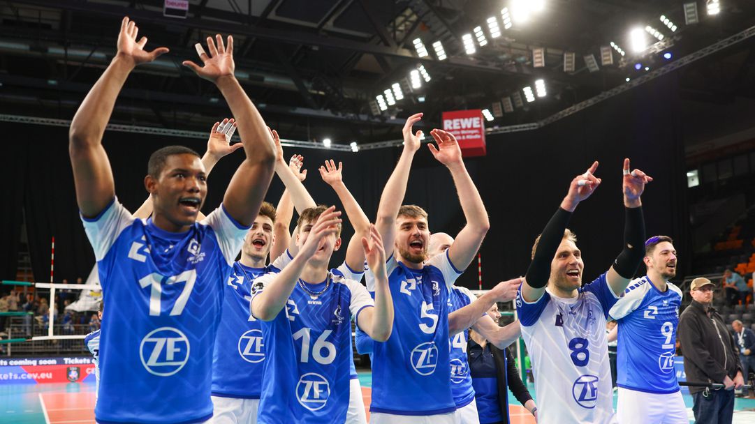 След като преди седмица Тур загуби вкъщи първата 1/8-финална среща от Фридрихсхафен с 0:3, в този момент френските волейболисти поведоха с 2:0 гейма, само че немският вицешампион направи цялостен поврат и стигна до домашен триумф с 3:2 (21:25, 15:25, 25:18, 25:21, 15:11) пред 1000 фенове в “Ратиофарм-Арена ” в Неу-Улм.