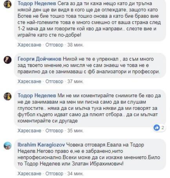 " Не ми коментирайте фотосите, бе! Кво да не се занимавам? На мен ми писна единствено да ви чувам нелепостите... няма да си мълча тук някакви да ми приказват за футбол, където идват единствено да плюят тима. Да си мълчат, коментирайте си другаде. Спокойно, като си потегли, кажи на другите да се стегнат, няма да имаш проблеми с мен! ", прибавя техничният полузащитник.