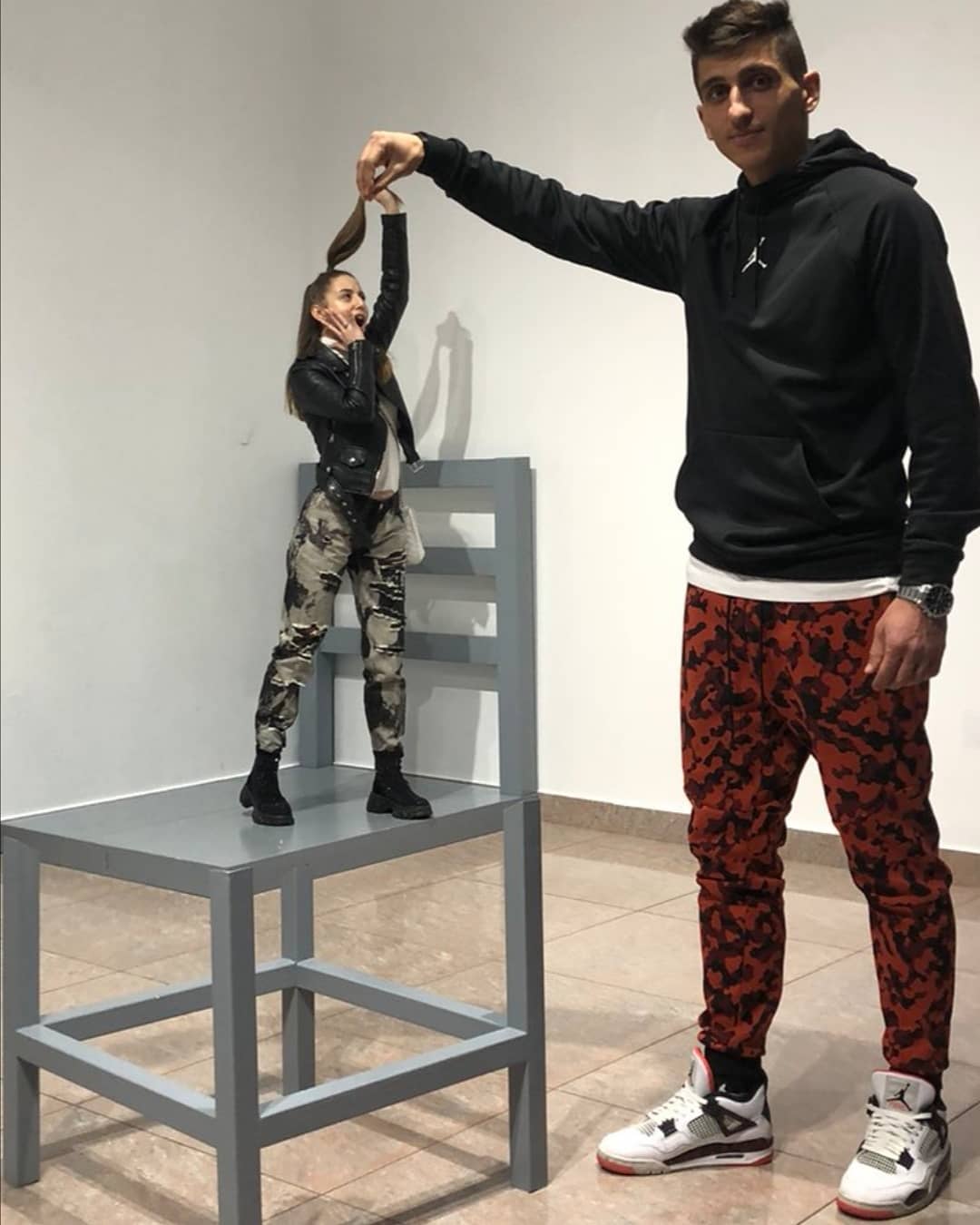 Футболист се забавлява с певица в музея на илюзиите