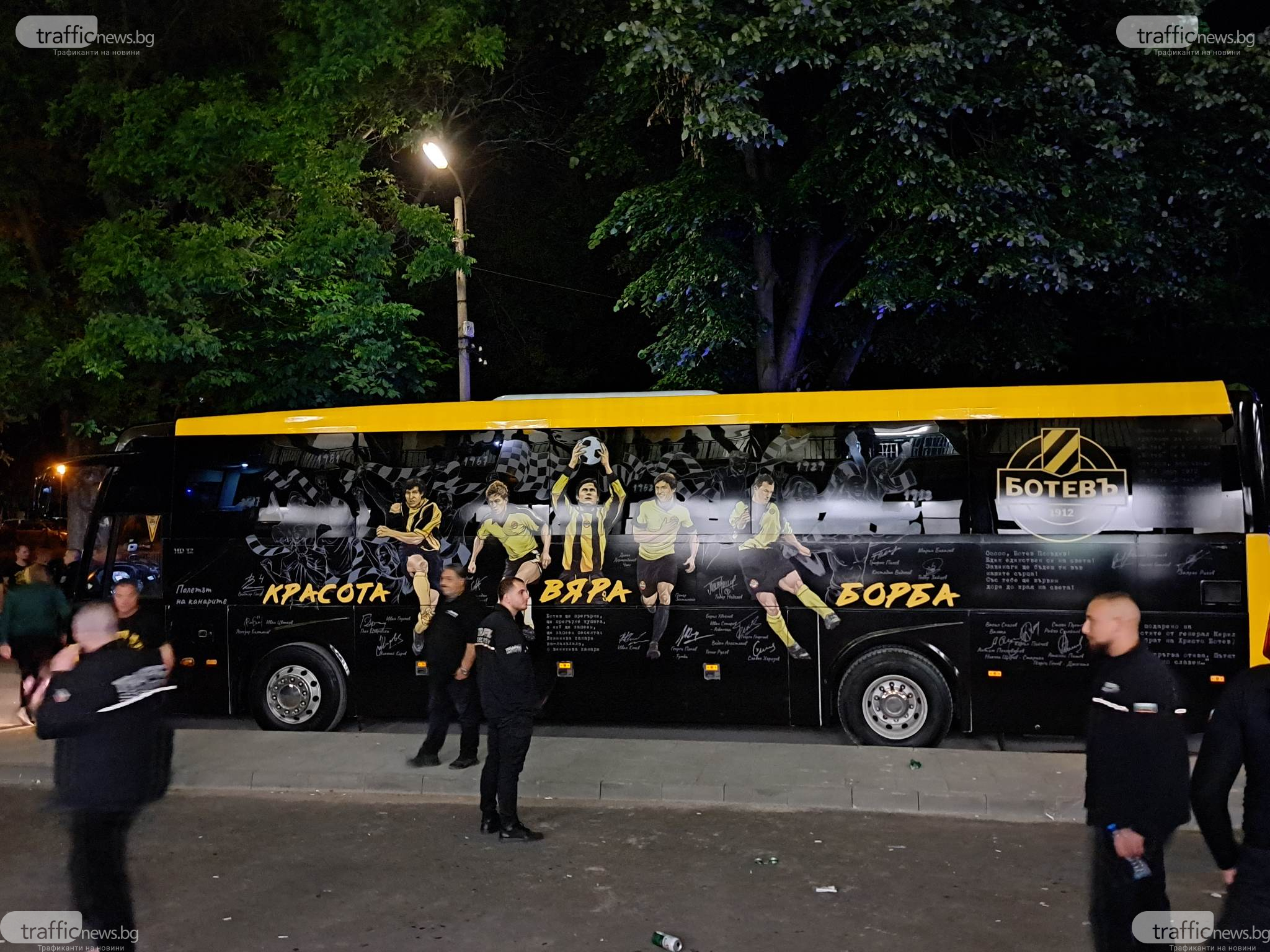 Не се стигна до произшествия и нямаше хвърлени предмети, а рейсът на Ботев потегли дружно с полицейски бусове.