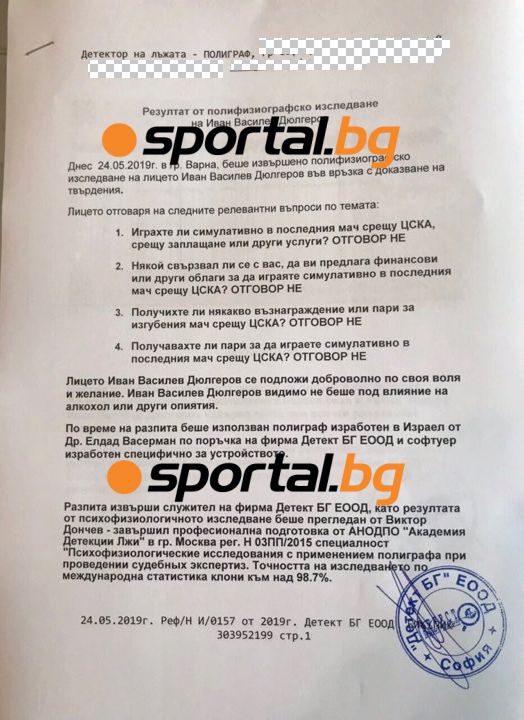Това стана ясно от проучването на един от участниците - вратаря Иван Дюлгеров, до което доближи Sportal.bg . Според детектора на лъжата стражът на варненци е почтен и заради тази причина не е освободен от Черно море.