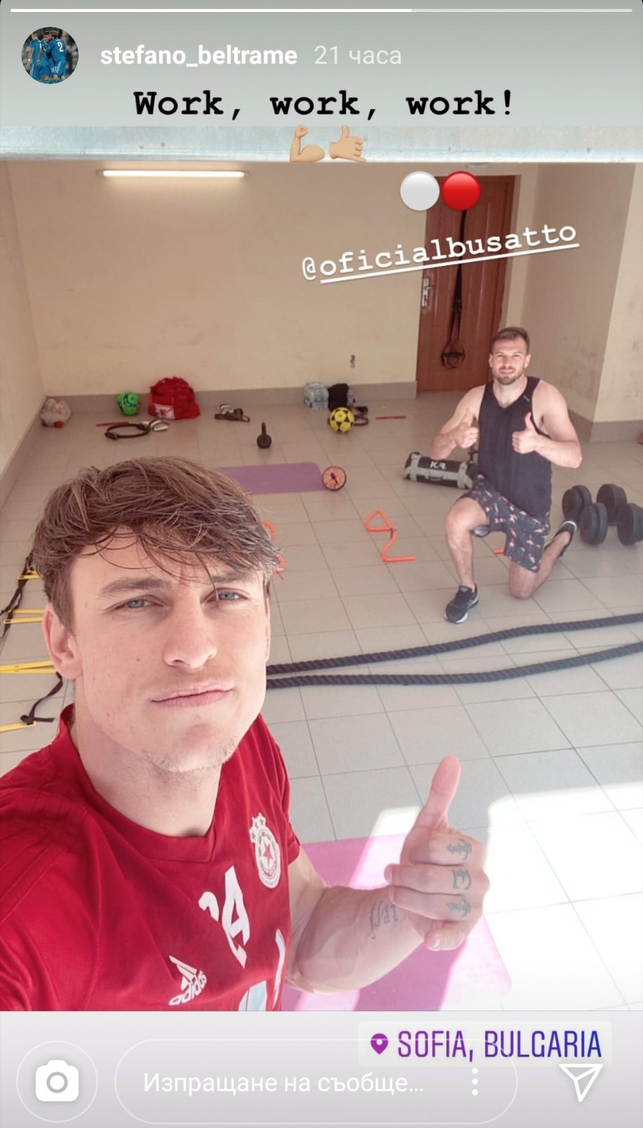 Футболистите на ЦСКА-София - Густаво Бусато и Стефано Белтраме откриха метод да организират тренировките си по време на изолацията поради пандемията от ковид.