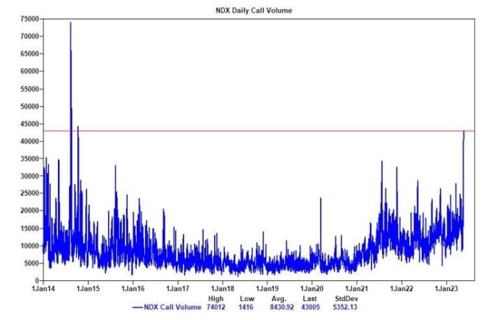 Фючърсите в петък допускат, че S&P 500 може още веднъж да надскочи равнището от 4 200 пункта, пробвайки се уверено да пробие над комерсиалния диапазон от 400 пункта, в който се колебаеше в продължение на съвсем седем месеца.Намаляването на паниката към районните банки в Съединени американски щати и тавана на държавния дълг, съчетано с по-спокойните условия на пазарите на облигации, защото търговците приветстват охлаждането на инфлацията и паузата за повишение на лихвените проценти от Федералния запас, са в основата на настроенията.Имаме даже нова структурна парадигма, с която биковете да пируват. Надеждите за благополучие на AI помогнаха за повишение на Nasdaq Composite до най-високата му стойност от август.Обемът на прът опцията Nasdaq 100 доближи най-високото си равнище от 2014 година: