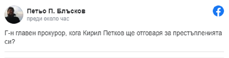 Петьо П. Блъсков пита главния прокурор: Кога Кирил Петков ще отговаря за престъпленията си?