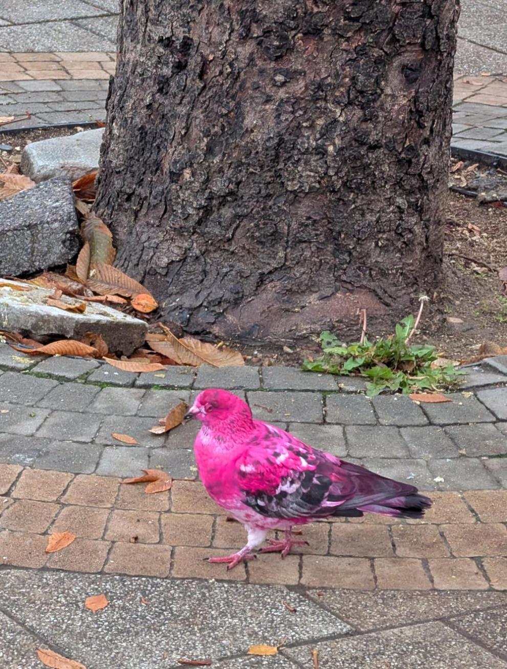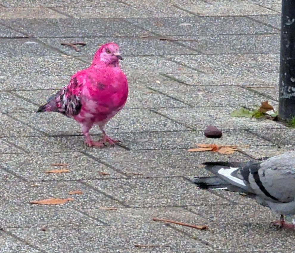 Боя или природна аномалия: Ярко розови гълъби летят в центъра на Плевен