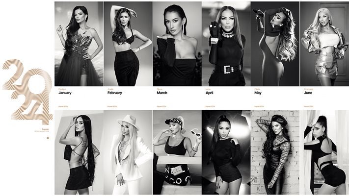 Лятото на 2024 година стартира с Емануела, която е лице на юни. Горещата Биляниш ни показва юли. Цветелина Янева ще ни води през септември, а Яница - през октомври. Те са лица в календара при започване на есента. Лице на ноември е Райна, а финала през декември слага Ариа.