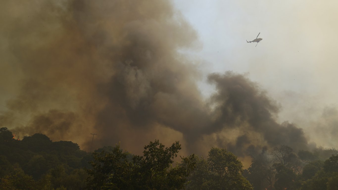 На остров Хиос бреговата защита употребява лодки, с цел да води хората на безвредно място, когато пламъците доближиха крайбрежията.