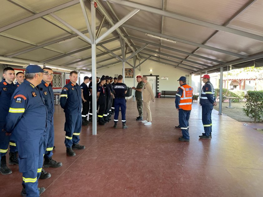 Гл. Инспектор Петър Петров уточни, че от началото на юли има командировани чиновници от ГДПБЗН от цялата страна в базата в Солун, които се ротират. Участвали са интензивно в потушаването на пожарите в Никити и Агиос Николас на полуостров Халкидики, а сега по-голямата част от състава на българската група е изпратена на остров Корфу, дружно с 6 противопожарни автомобила. Имат подготвеност да реагират при нужда. Работят доста добре с гръцките пожарникари като вършат регулярно взаимни учения за по-добра съгласуваност на терен.