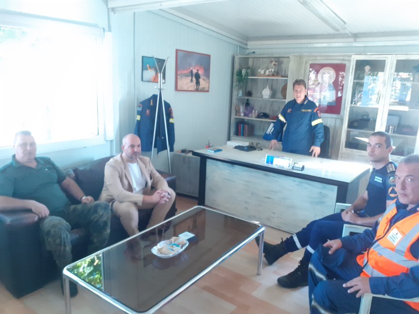 Генералният консул на България в Солун Антон Марков, генерал-майор Валентин Кръстев, зам.-командирът на Корпуса за бързо разрастване на НАТО в Солун и дипломати от генералното консулство организираха среща с основен контрольор Петър Петров, шеф бранш “Специализирани оперативни действия ” в Групово дело ПБЗН и Аргириос Ренгас, шеф на Втора специфична единица за горски интервенции към Службата за пожарна сигурност на Гърция.