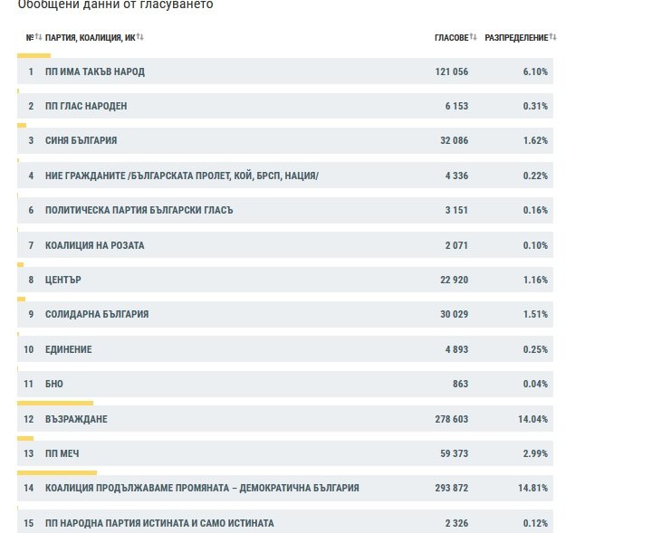 Следват ги Движение за права и свободи с 15.89%, " ПП-ДБ " остават трети с 14,81%, а " Възраждане " са след тях с 14.04%.