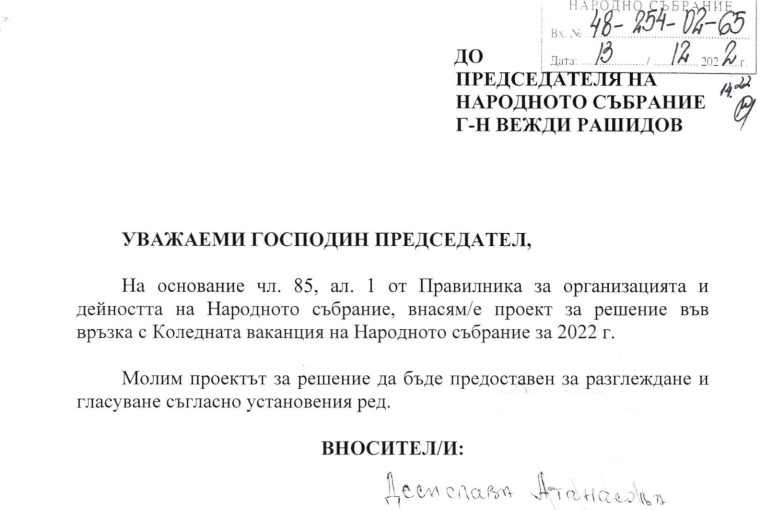 ГЕРБ реши предколедно да ядоса народа като внесе посредством шефката на парламентарната си група проекторешение за много дълга депутатска почивка. Цели 10 дни разгласи почивни в предлагането си Десислава Атанасова - от 24 декември до 2 януари в това число.