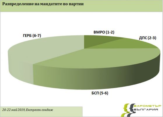 ГЕРБ ще има 6 сигурни евродепутати, а Българска социалистическа партия - 5, с опция да набъбнат с още един според от финалната изборна интензивност в неделя.