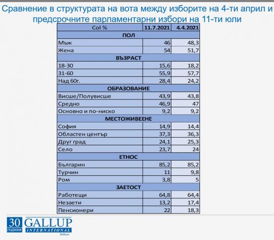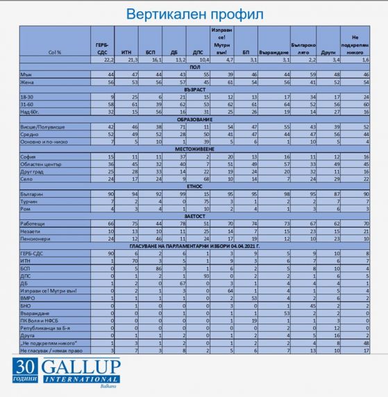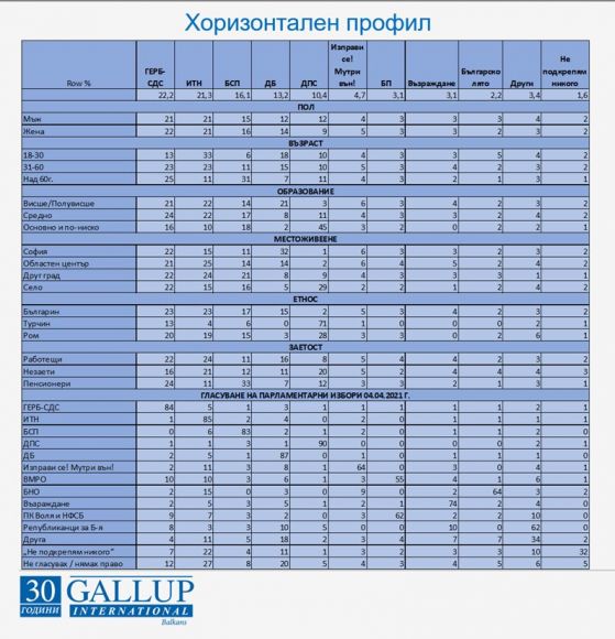 Това разясняват от „ Галъп интернешънъл болкан ”, които разгласяват профили и динамичност на вота, с цел да дадат още по-дълбок взор върху отминалите избори.