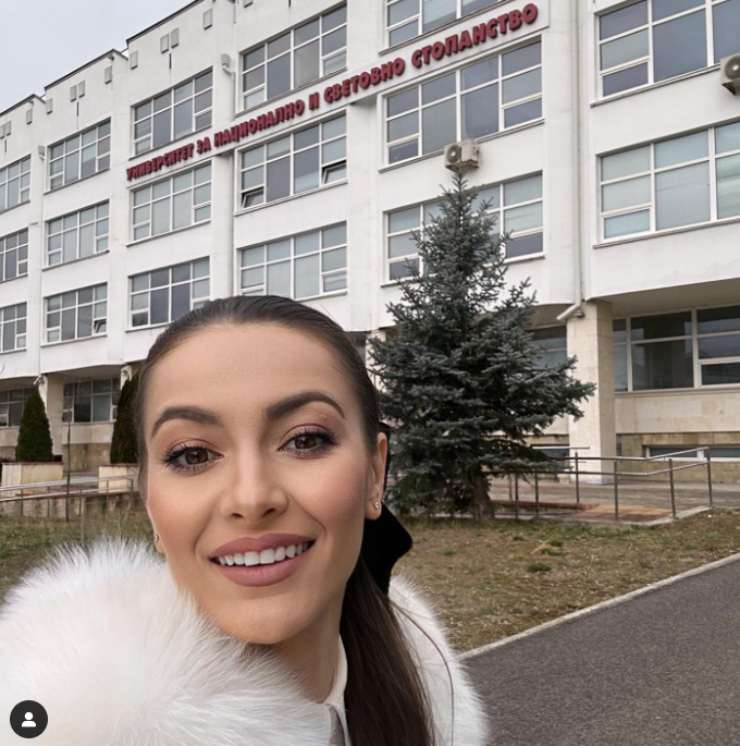 " Днес беше предварителното разискване на моя дисертационен труд. След старателна подготовка от моя страна членовете на катедрения съвет на УНСС оцениха положително напъните ми и ме поддържаха с тенденция към идната стъпка - явяване на вътрешна отбрана. Сега следва да нанасям корекции и усъвършенствания върху текста по предложенията, отправени ми през днешния ден. Благодарна съм на моя теоретичен началник проф. Любомир Стойков за доста точните университетски препоръки и поддръжка " - написа младата майка в инстаграм.