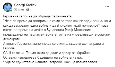 Кадиев: Германия обръща палачинката, чудя се нашите ястреби как ще вземат завоя