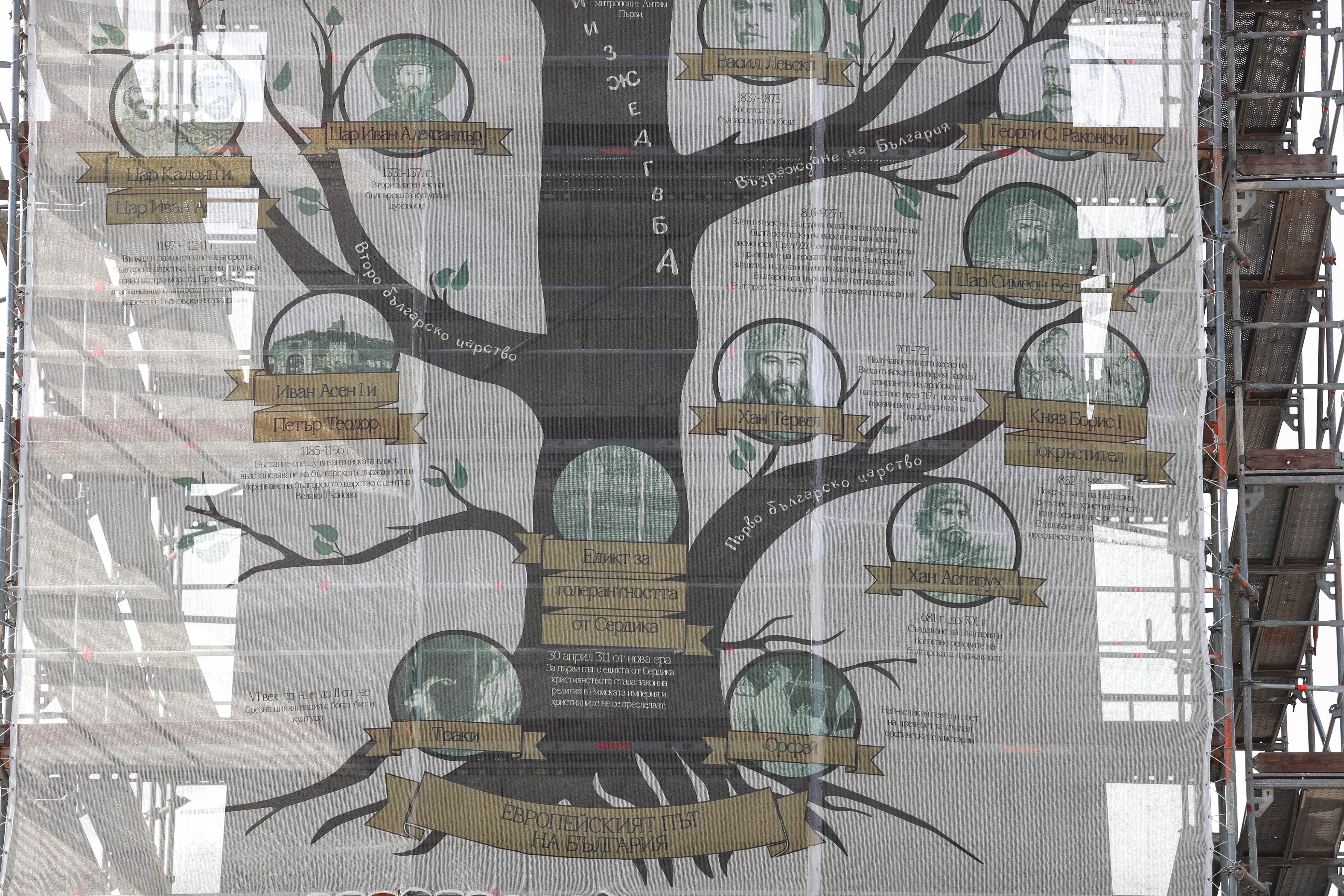 Гигантски банер с историята на България в Европа обкръжи скелето към Паметника на руската войска.