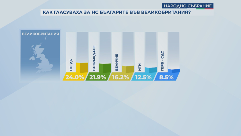 Около 20 хиляди българи гласоподаваха в 118 изборни секции във Англия. Както и на предходните избори предходната година, най-вече са последователите на ПП-ДБ, само че този път преднината пред втората мощ - Възраждане, е доста по-малка. Новата партия Величие е трета мощ във вота на Острова и даже печели в някои секции.