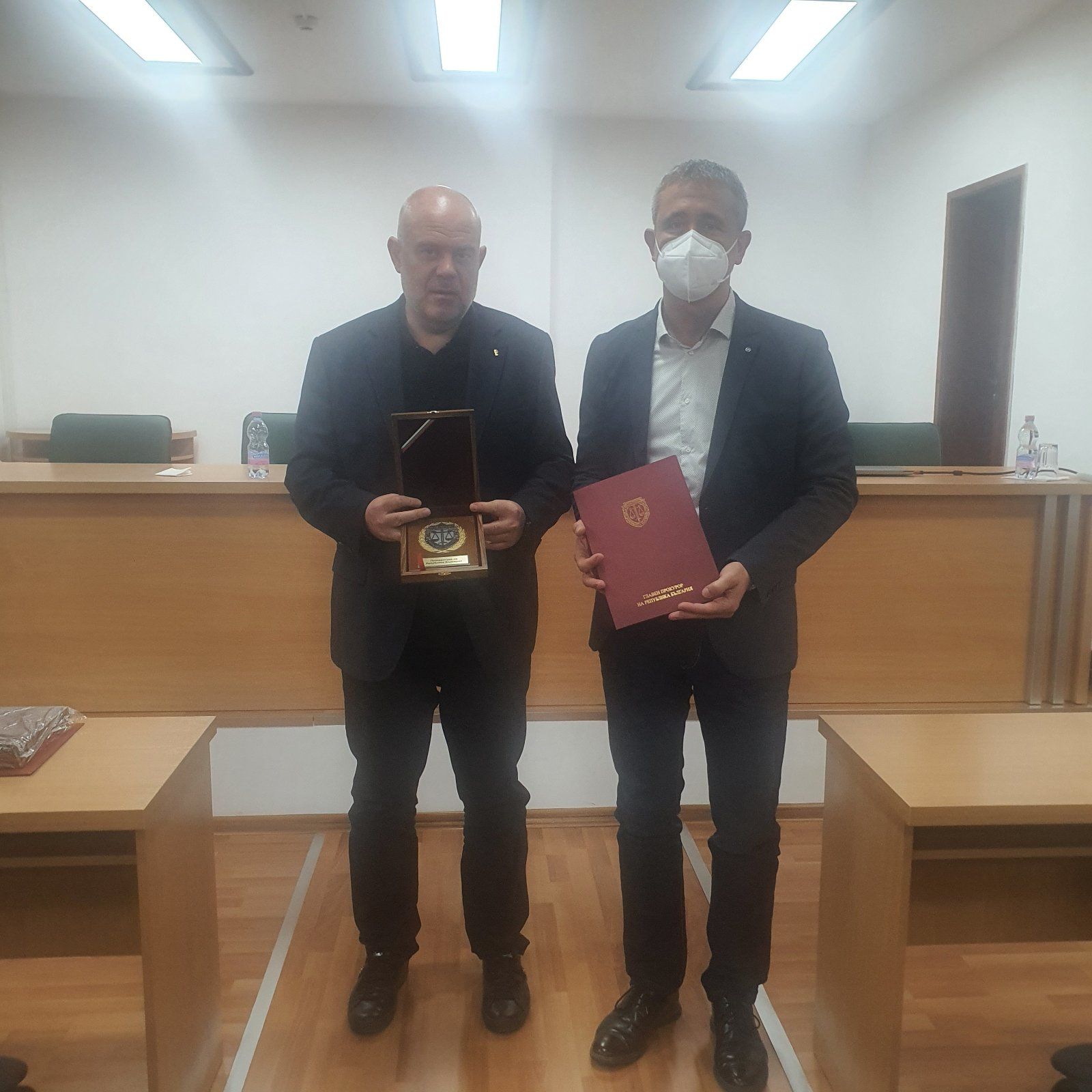 Главният прокурор на Република България Иван Гешев награди през днешния ден с плакет „ За заслуга “ административния началник на Окръжна прокуратура-Русе Георги Георгиев и административния началник на Окръжна прокуратура-Ловеч Валентин Вълков.