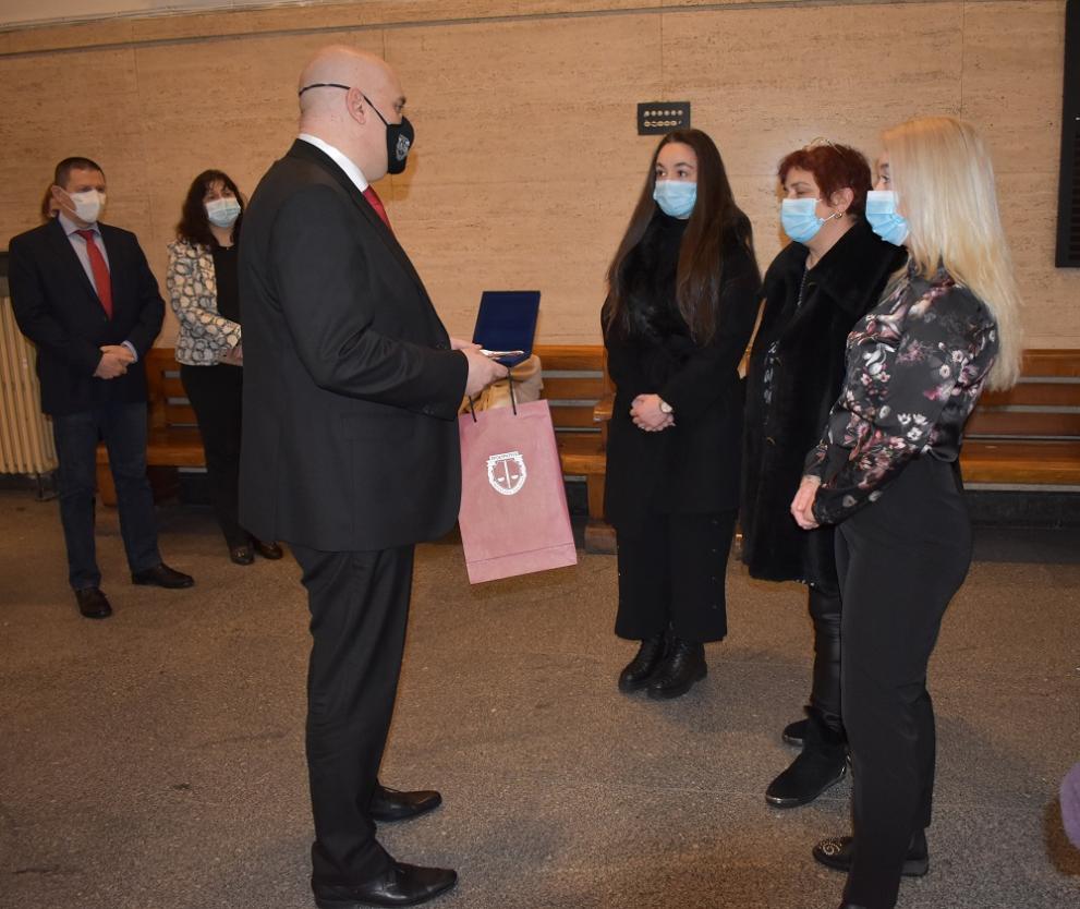 Освен оценката „ Почетен знак на Прокуратурата на Република България “ на наследниците на Евгений Гюров, който умря на 11.12.2020 година, бе връчена и грамота.