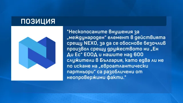 Нескопосаните внушения за " интернационален " детайл в дейностите против “Нексо ”, с цел да се обоснове нахален произвол против сдружението ни " Ен Ди Ес " ЕООД и нашите над 600 чиновници в България, като надали не по искане на " евроатлантически сътрудници ", са разобличени от неопровержими обстоятелства ”, прибавят от компанията.