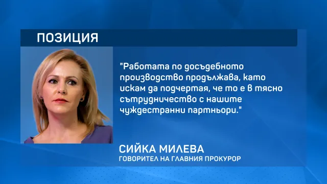 “Работата по досъдебното произвеждане продължава, като желая да подчертая, че то е в тясно съдействие с нашите задгранични сътрудници ”, посочи Милева.