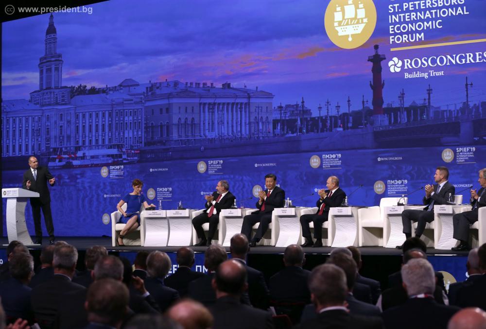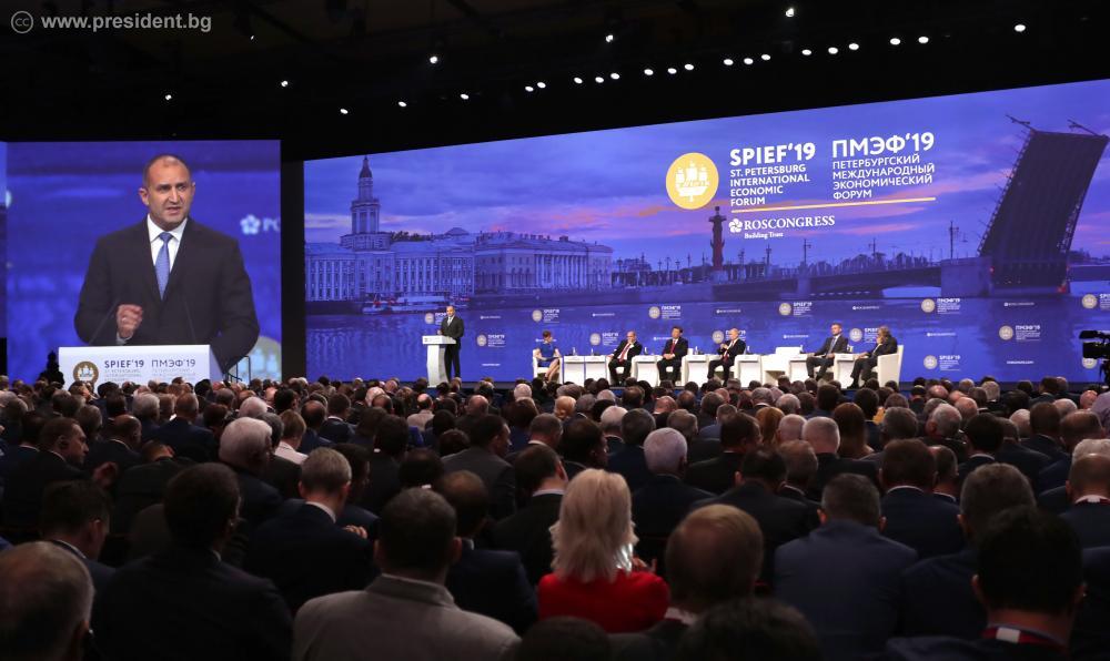 Президентът открои икономическия конгрес в Санкт Петербург като среща на огромната стопанска система с огромната политика, на който се разискват основните проблеми на днешното развиване и добави, че приема изпратената до него покана за присъединяване, като самопризнание за способността на България да построява мостове сред разнообразни райони и култури.