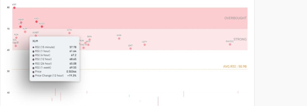 Stellar означи 8% растеж на цената през последните 24 часа, подсилен от 12-часов RSI от 68.65 и постоянни механически индикатори. Краткосрочните RSI и всички пълзящи междинни удостоверяват, че XLM е за покупка, което я прави безапелационна алтернатива за тези, които търсят бичи подтик.