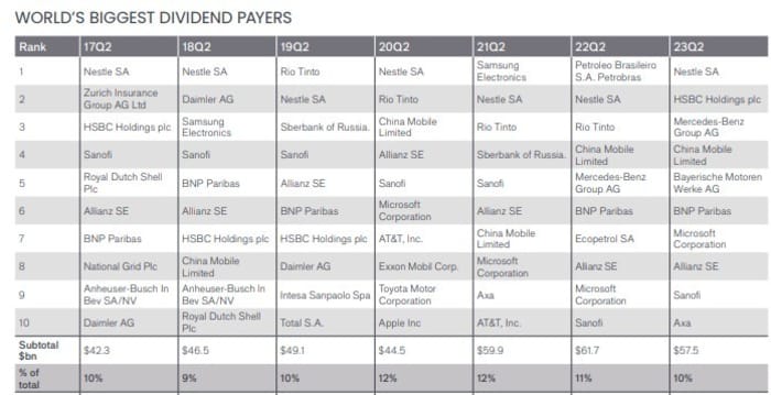 ИЗТОЧНИК: ЯНУС ХЕНДЕРСЪН„ Икономическият напредък по света се забавя, защото реагира на по-високите лихвени проценти. Сега пазарите чакат световните облаги да останат непроменени през тази година, откакто доближиха рекордни равнища през 2022 година, и когато приказваме с компании по света, те в този момент са по-предпазливи по отношение на вероятностите “, сподели Бен Лофтхаус, началник на световните доходи от акции в Явуд Хендерсън.Въпреки това той добави: „ Една от успокоителните характерности на приходите от дивиденти е, че те нормално са доста по-малко променливи от приходите. Изплащанията изостанаха от растежа на облагата предходната година и затова могат да го надвишат тази година. “Банковият бранш способства за половината от общия растеж на дивидентите през второто тримесечие, с 19,7% през годината до рекордните 85,3 милиарда $, и Лофтхаус чака тази наклонност да продължи.„ По-слабата икономическа среда нормално е негативна за банките, само че позитивният резултат върху банковите маржове от края на годините на свръхниски лихвени проценти е доста мощен и подтиква изплащането на дивиденти. Големите банки са доста строго контролирани и по тази причина влизат в рецесията със мощна финансова позиция “, сподели той.Въпреки това, съвкупният растеж на дивидентите е в Съединени американски щати, където изплащането от 148 милиарда $ е повишено с 2,6% на съществена база, защото са разпределени по-малко еднократни специфични дивиденти.Двата най-големи дивидентни платци, понижили дивидента, бяха Intel, който реши да спести близо $1 милиард на тримесечие, и Blackstone, който поправя изплащането си, откакто по-ниските оценки на частните активи доведоха до внезапен спад в облагите.Противодействие на това беше опазването на здравето, което обезпечи най-големите мотори на растежа на дивидентите, като UnitedHealth Group и Eli Lilly.Имаше незабравим контрастност в Обединеното кралство също, където възобновяване на изплащанията на HSBC усили приноса на банковия бранш, само че по-малкото огромни еднократни специфични дивиденти и повече понижения на постоянните изплащания от миньори оставиха главното общо погашение с 12,1% надолу.Ако изключим Обединеното кралство, растежът на дивидентите в Европа беше най-бързият от всеки район, с 9,7% до 184,5 милиарда $, воден от банки и производители на коли.Списъкът на най-големите плащащи дивиденти в света продължава да бъде доминиран от основани в Европа световни корпорации, с Microsoft, Apple и Exxon Mobil надлежно на седма, седемнадесета и деветнадесета позиция.
