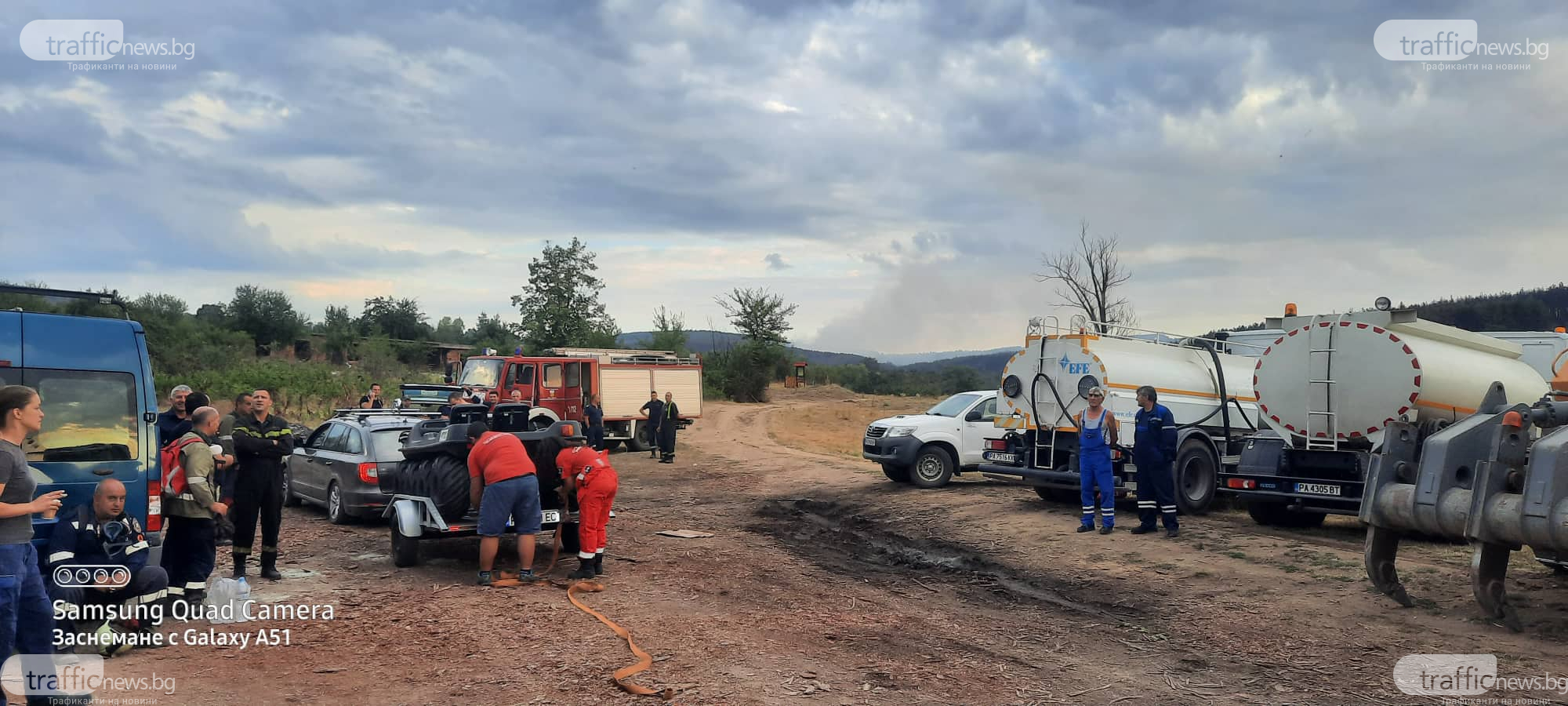 " Има пет огнища, които сега работят, не са мощни. Имаме и един хеликоптер в поддръжка, много доброволни формирования. Надяваме се, че до тази вечер ще бъде овладян. Ако излезе вятър, не мога да кажа, само че главните 5 огнища, които сега ги борим, мисля, че ще успеем да се оправим през днешния ден с три от тях ", сподели кметът на Панагюрище Никола Белишки, представен от БНР.
