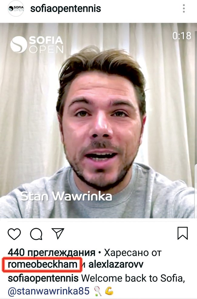 Синът на Дейвид Бекъм постоянно е измежду първите, харесали информациите от Sofia Open. Ромео явно се радва и на оповестените досега огромни имена от международния тенис, които ще играят в София през февруари 2019 година, както и на изпращаните от тях видеопослания към българските почитатели.